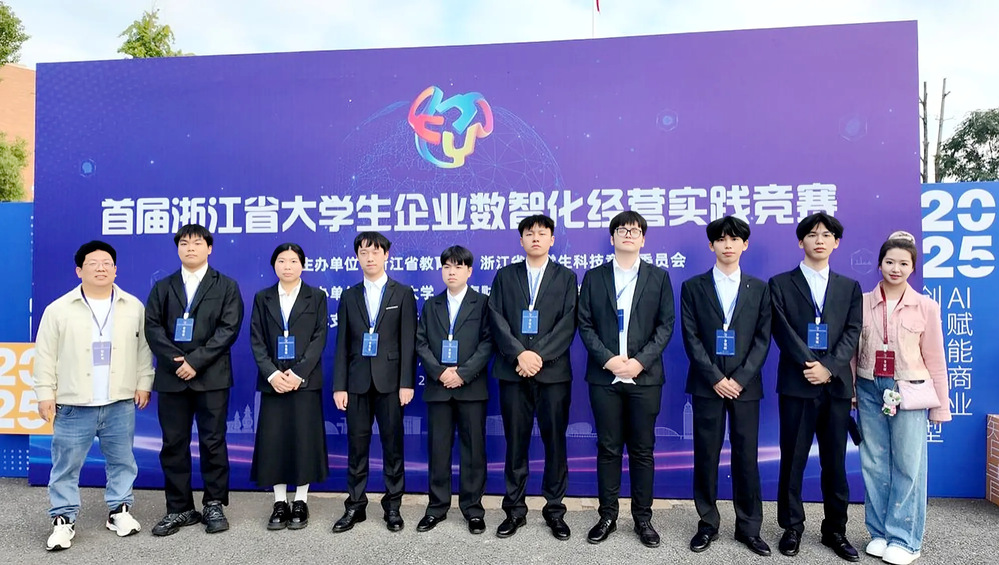 10月25日,首届浙江省大学生企业数智化经营实践竞赛决赛答辩及闭幕式在上海财经大学浙江学院顺利举行,来自全省44所本科高校的271支队伍、39所高职院校的175支队伍,共计1700余名选手参与角逐。商学院选派的三支代表队共斩获一等奖1项、二等奖1项、三等奖1项。由商学院李菁羚、汪莉娜、陈晟三位教师指导,叶睿哲、舒文浩、陈星河、陈星海四位同学组成的团队以小组第一荣获高职组比赛一等奖,鲍庆哲、王慧如、汪锦欣、桂文涛团队荣获二等奖,刘俊浩、曹家聪、连姿伊、成家楠团队荣获三等奖。