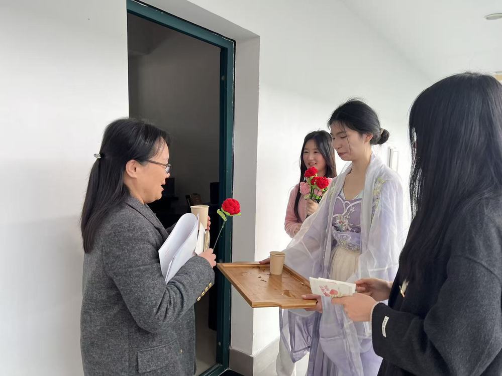 活动尾声,一场温馨的敬茶仪式将现场气氛推向高潮。茶艺社同学向老师们奉上清茶,传承尊师重道美德。参与活动的旅游232同学徐雅琴感慨道:“一杯清茶正是清廉品格的生动写照。我们以茶敬师,就是要学习师长们如茶般清正高尚的风范。”