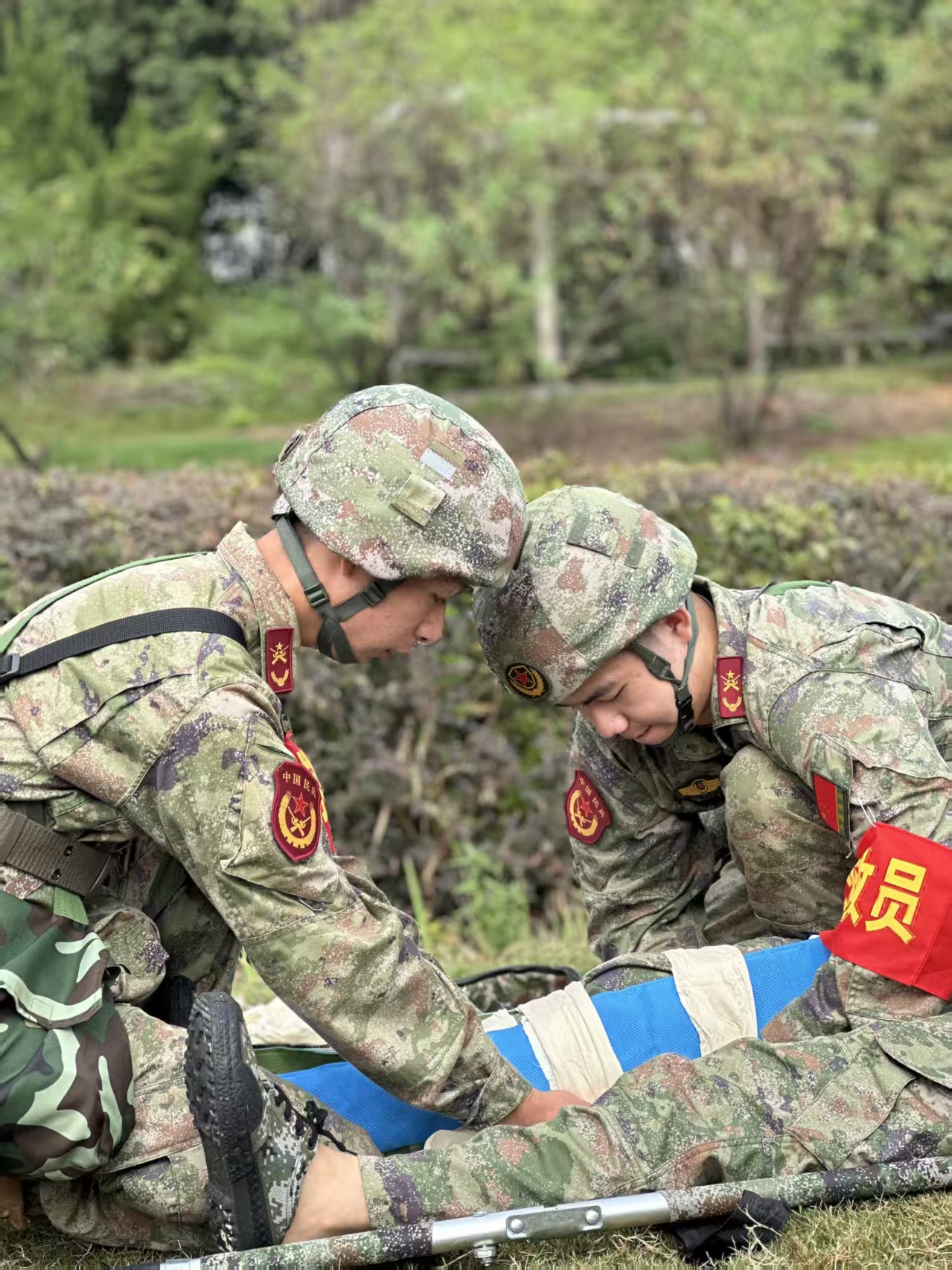 功不唐捐,玉汝于成。五位同学利用课余时间,刻苦钻研救护技能,系统学习止血、包扎、固定、搬运等战伤救护全流程,在模拟实战环境下提升应急反应与团队协作能力。从判断伤情、快速施救,到利用担架安全转移“伤员”,每一个环节他们都反复打磨,追求零失误,将战场救护的五大技术熟练转化为肌肉记忆。最终,五位同学获得地面防卫项目第二名、战场救护项目第三名、团体第二名的好成绩。