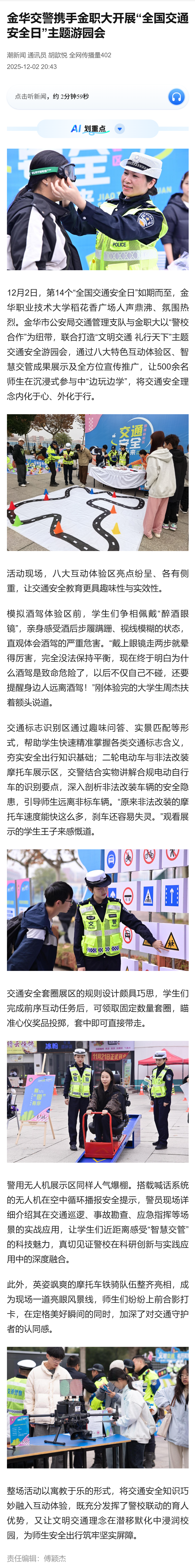 潮新闻:金华交警携手金职大开展“全国交通安全日”主题游园会
