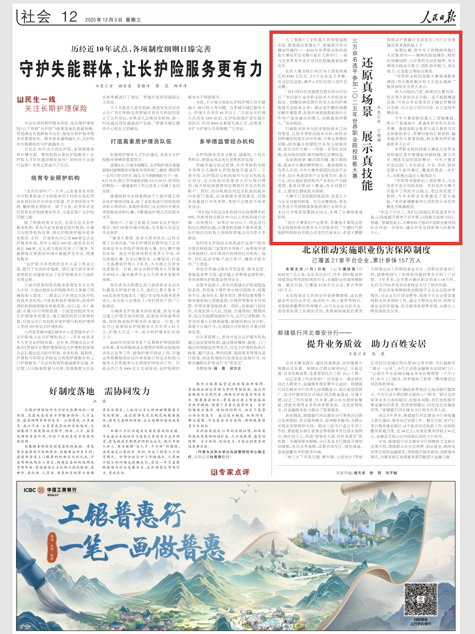 人民日报:三万余名选手参加二〇二五年世界职业院校技能大赛 还原真场景 展示真技能
