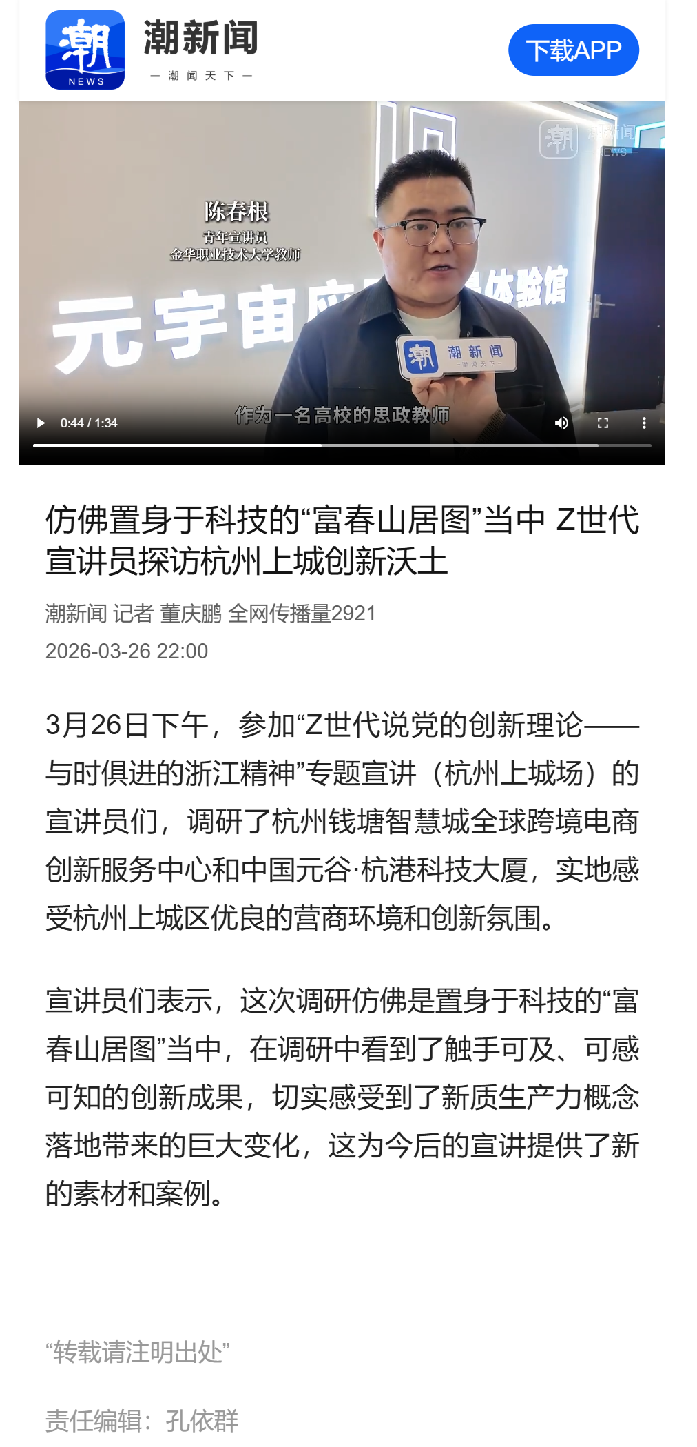 潮新闻:仿佛置身于科技的“富春山居图”当中 Z世代宣讲员探访杭州上城创新沃土
