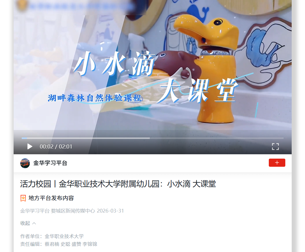 学习强国 金华学习平台:活力校园丨金华职业技术大学附属幼儿园:小水滴 大课堂