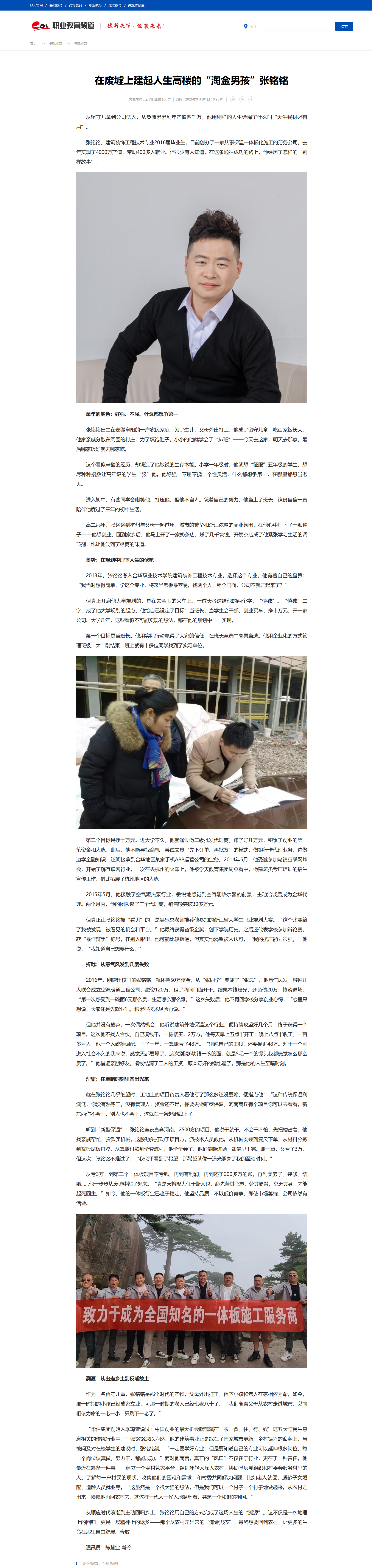 中国教育在线:在废墟上建起人生高楼的“淘金男孩”张铭铭