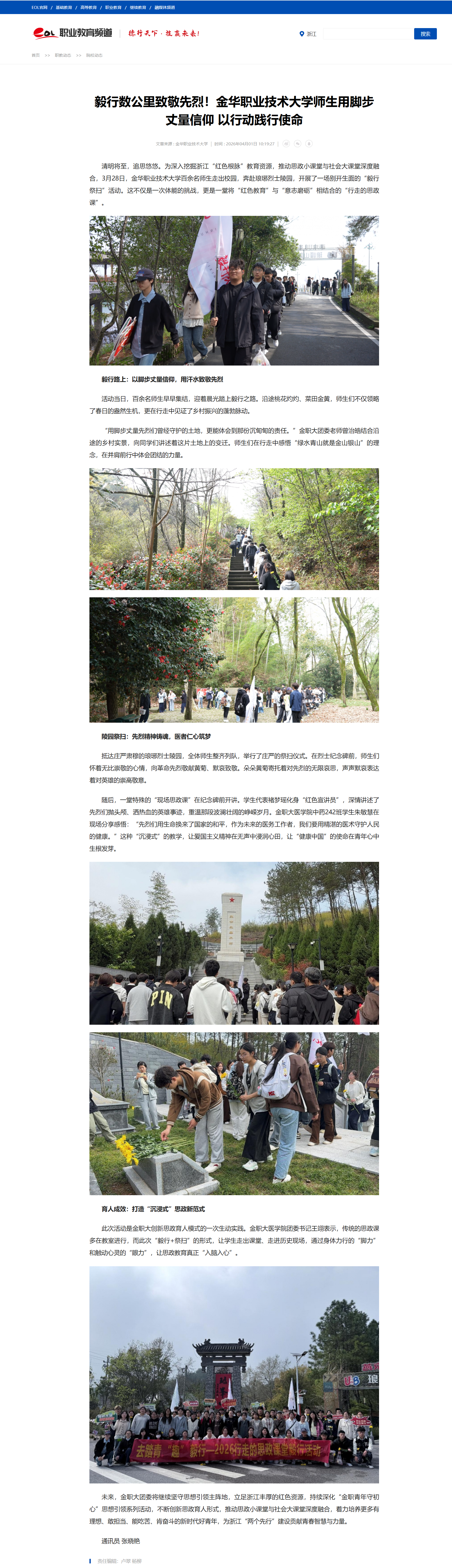 中国教育在线:毅行数公里致敬先烈!金华职业技术大学师生用脚步丈量信仰 以行动践行使命