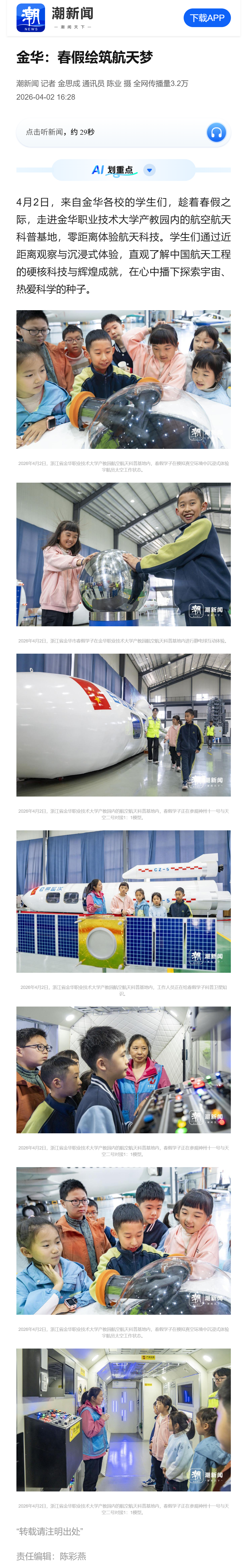 潮新闻:金华:春假绘筑航天梦