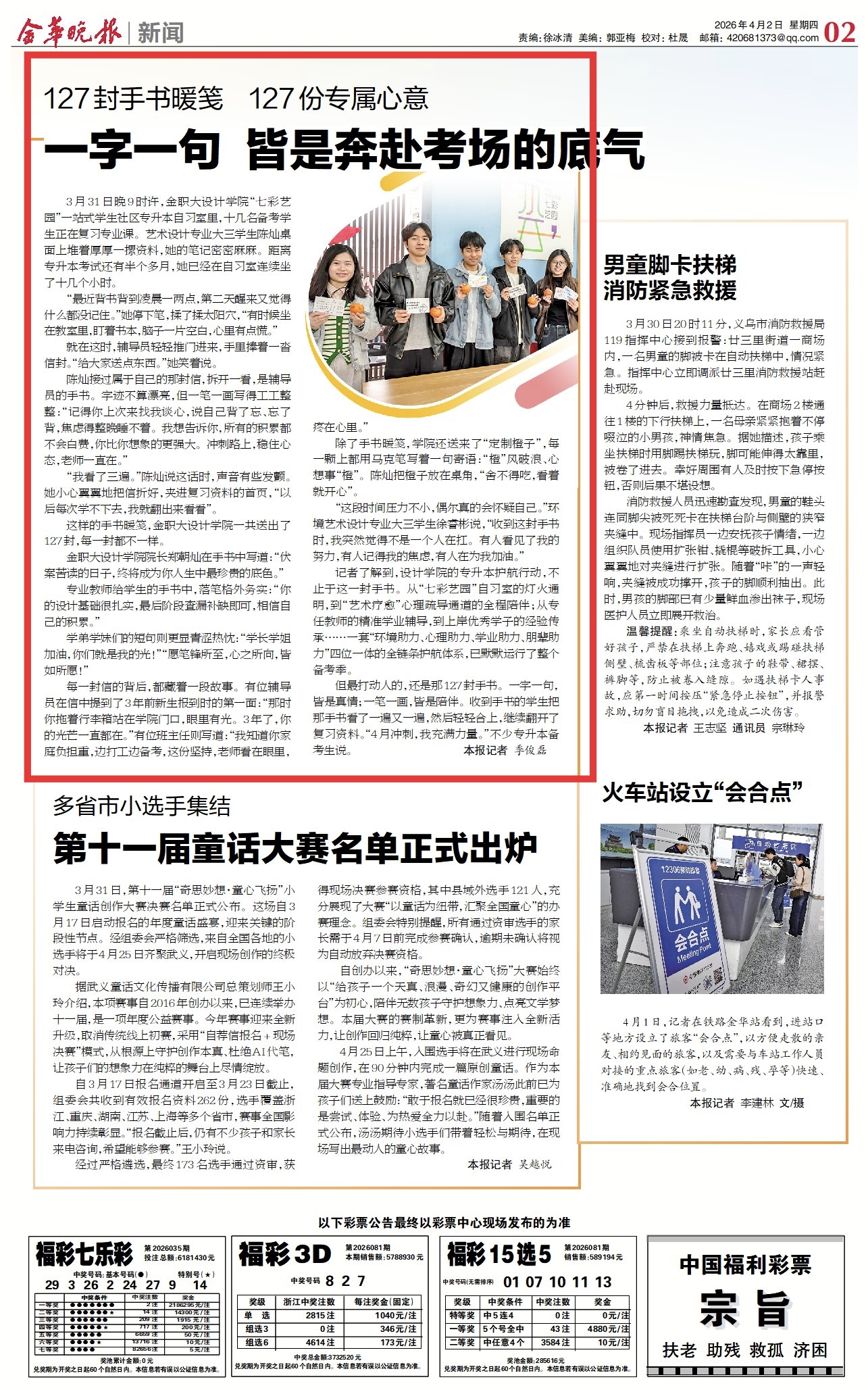 金华晚报:127封手书暖笺 127份专属心意 一字一句 皆是奔赴考场的底气