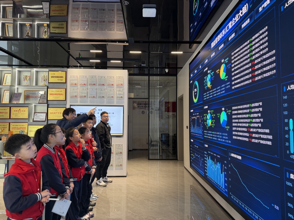 当春假遇上“行走的思政课”,会碰撞出怎样的精彩?近日,来自金华职业技术大学、丽泽中学与南苑小学的师生代表,走进金华开发区首家省级未来工厂——浙江汇隆晶片技术有限公司,开启了一场别开生面的研学实践之旅。此次活动将思政课堂从校园延伸至企业一线,打破学段壁垒与校园围墙,让不同年龄段的学生在同一片产业热土上,体悟精益求精的工匠精神,共同感受智能制造的魅力,让红色思政与产业实践同频共振。
