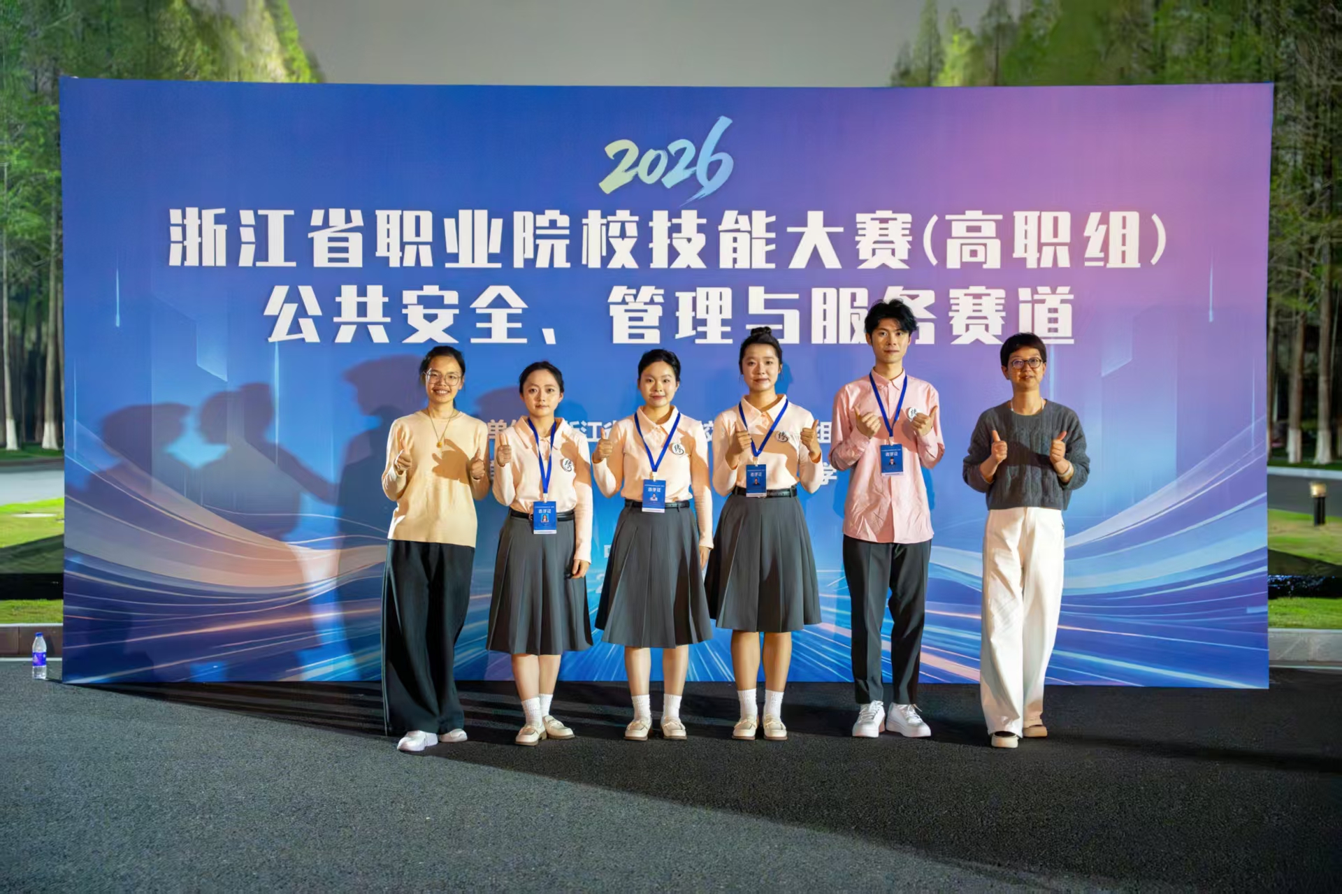 4月3日至5日,2026年浙江省职业院校技能大赛(高职组)公共安全、管理与服务赛道在浙江警官职业学院举行,全省49支队伍同台竞技。师范学院现代文秘专业团队首次出征该赛道,由张朵、俞子彦、聂怀香、曹杨译驰四位同学组成的代表队沉着应战、默契协作,成功斩获铜奖,在省级赛事舞台上展现了学校文秘学子扎实的专业功底与昂扬向上的青春风采。