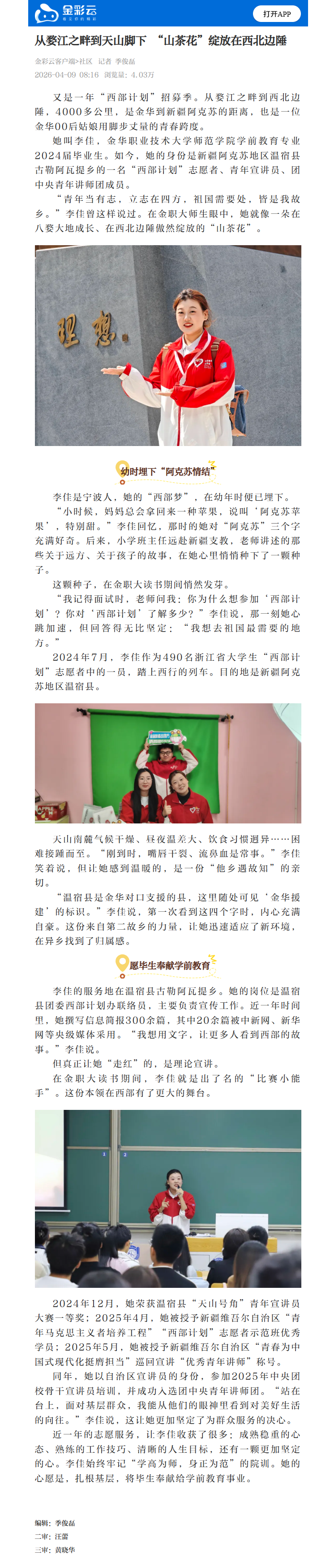 金彩云客户端:从婺江之畔到天山脚下 “山茶花”绽放在西北边陲