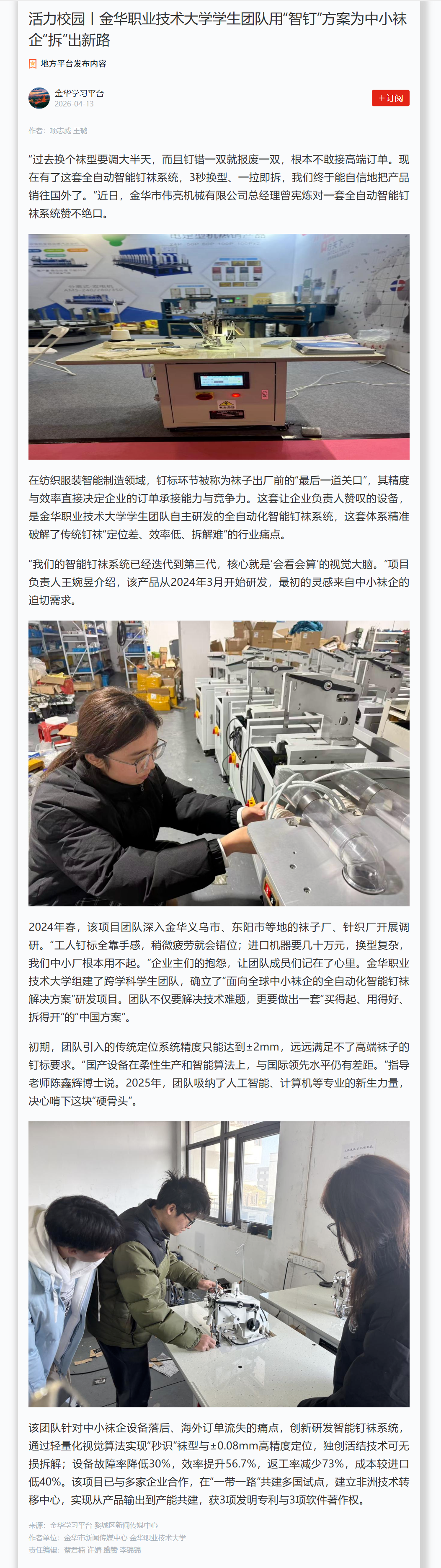 学习强国 金华学习平台:活力校园丨金华职业技术大学学生团队用“智钉”方案为中小袜企“拆”出新路