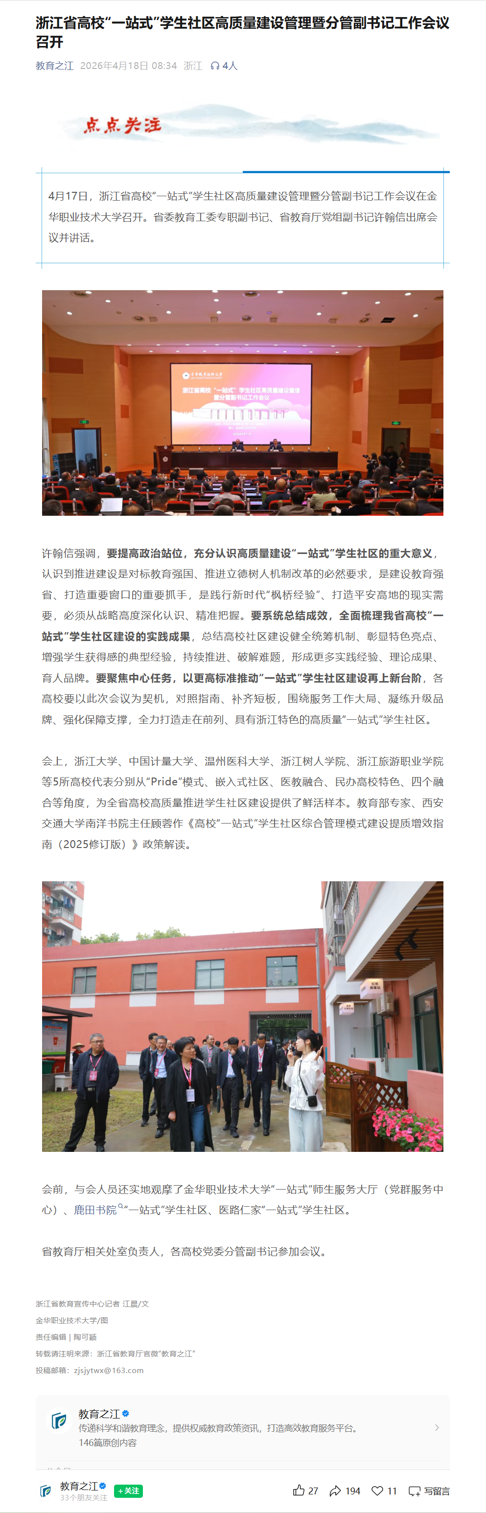 教育之江:浙江省高校“一站式”学生社区高质量建设管理暨分管副书记工作会议召开