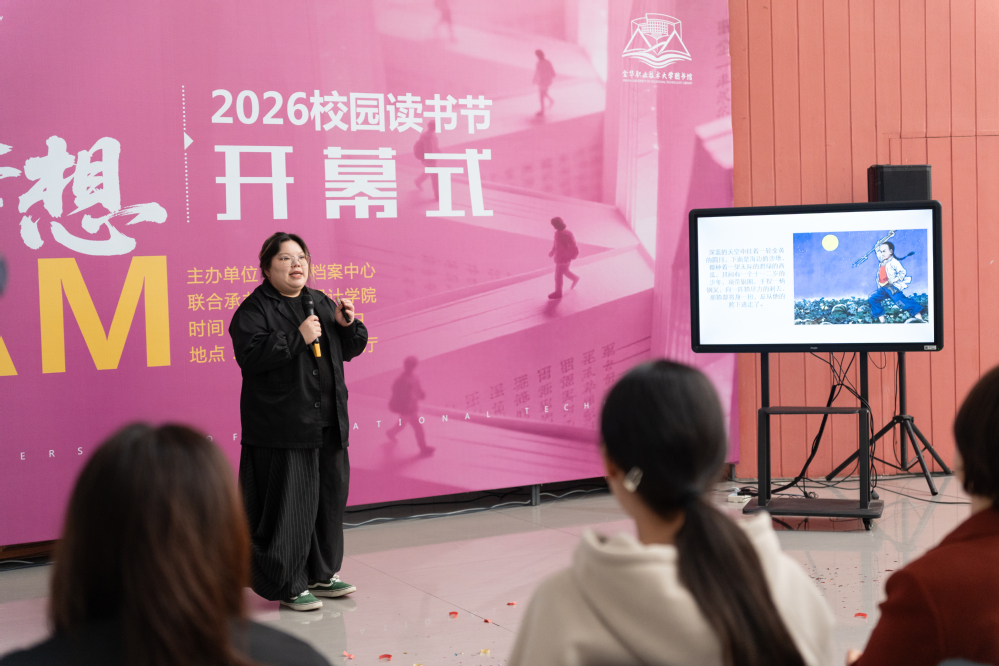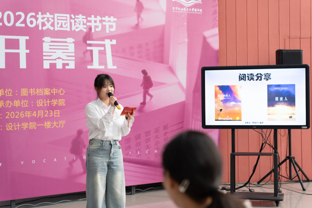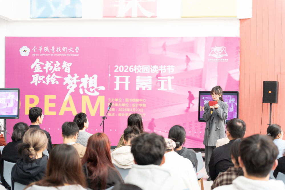 作为2026年校园读书节开幕后的首场重点活动,4月23日下午,金华职业技术大学“金书启智·职绘梦想”世界读书日主题阅读分享会成功举办。本次活动由校图书档案中心、设计学院联合承办,各学院党委书记及60余名师生代表参与,共同体验了一场思想与艺术交融的阅读盛宴。