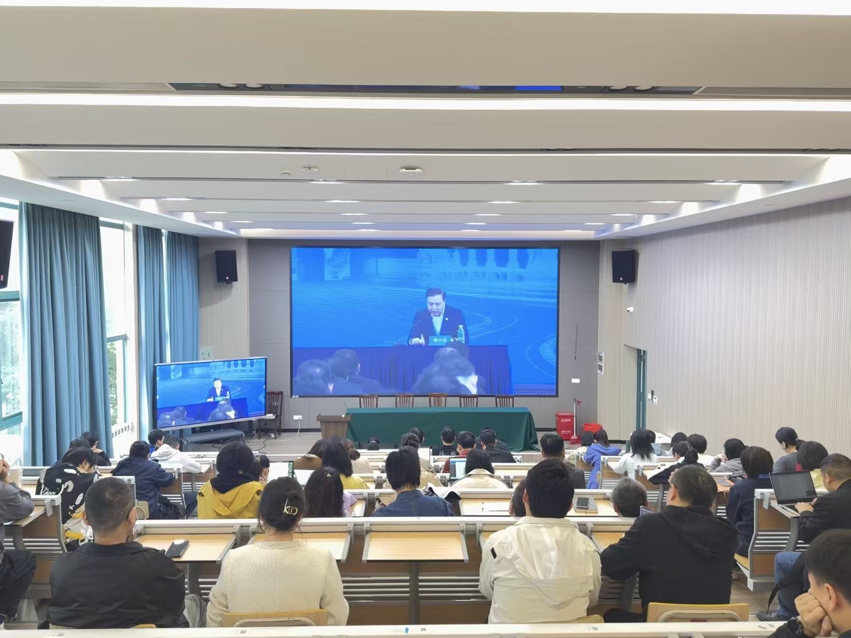 为认真落实教育部科学技术与信息化司、高等教育司《关于组织开展2026年高校实验室安全工作培训的通知》文件精神,确保实验室安全有序运行,切实维护师生人身安全与校园稳定,4月23日上午,学校在文旅学院报告厅集中观看教育部2026年高校实验室安全工作培训会。实验室管理处负责人、二级学院分管领导、实训中心负责人、科研实验室负责人及实验教师代表等近70人参加培训。