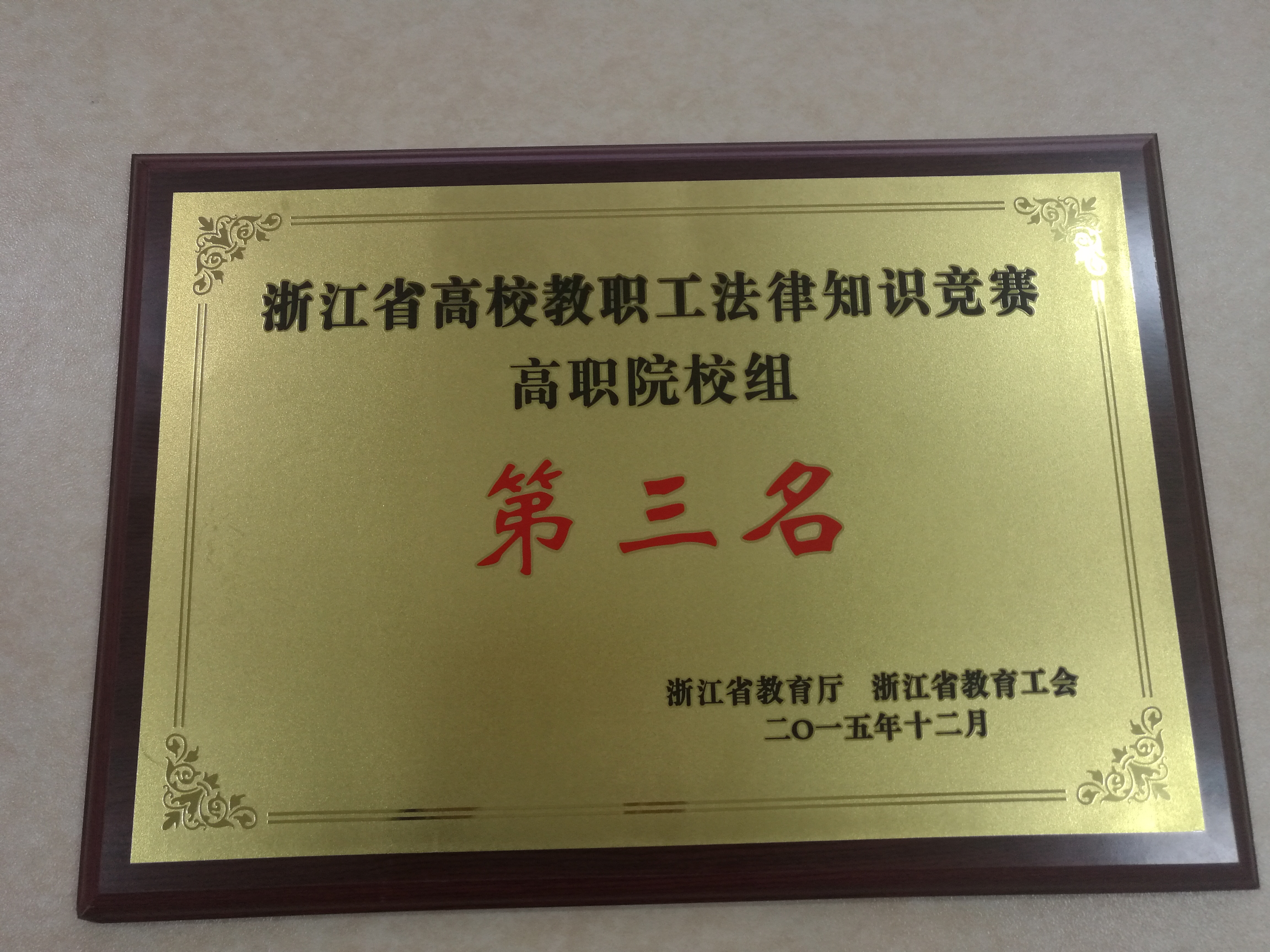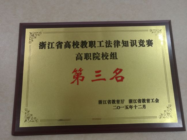 金职院(工会)荣获2015年浙江省高校教职工法律知识竞赛高职院校组第三名